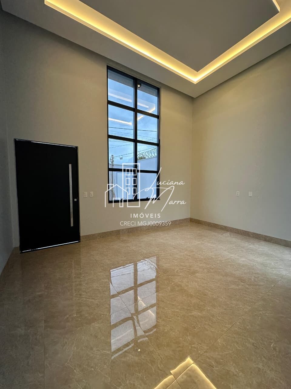 ✅️ sala de tv com pé direito alto e janela em pele de vidro;